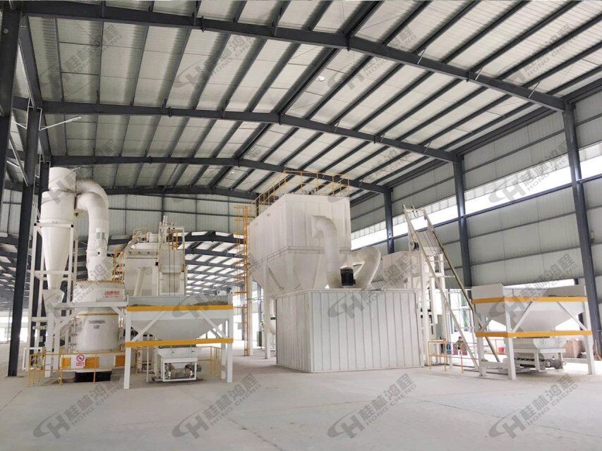325目或者400目以上的中大型打石粉機選用HLMX超細立磨居多,通過風機與選粉機轉速的調 節可以生產出細度達2500目的石灰粉,如果用打重鈣粉要求2500目以上則采用二次選粉系統。